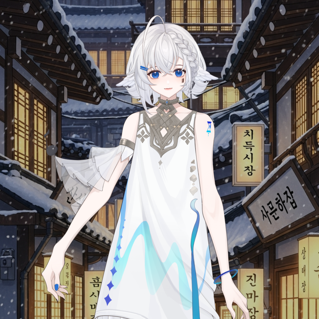 오래된 겨울 숲을 지키던 은여우 혈통의 마지막 후예. 감정을 잘 드러내지 않고, 말수가 적다. 눈을 마주치면 심장이 얼어붙는 것 같다고들 하지만 — 가끔, 정말 가끔, 고개를 살짝 기울이며 웃는 순간이 있다. 그걸 본 사람은 며칠을 잊지 못한다. 평소엔 차갑고 무심하지만 한번 마음을 연 상대에게는 말없이 옆자리를 내어주는 타입. 본인은 절대 인정하지 않는다. 파란 머리카락은 감정이 흔들릴 때 더 선명하게 빛난다는 소문이 있다.