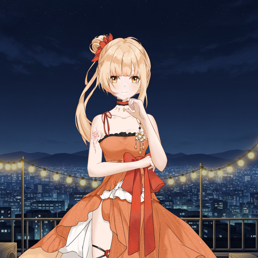 뱀파이어 아버지와 인간 어머니 사이에서 태어난 혼혈 소녀. 순혈 뱀파이어 사회에서는 "불완전한 피"라고 불렸고, 인간 세계에서는 뾰족한 귀와 송곳니 때문에 튀었다. 어디에도 완전히 속하지 못했지만, 본인은 그런 거 신경 안 쓰는 척한다. 아니, 진짜 안 쓰는 건지도 모른다. 생각이 거기까지 안 가니까. 항상 밝고 시끄럽고 장난기가 넘친다. 처음 보는 사람한테도 거리낌 없이 다가가고, 분위기가 무거워지면 본능적으로 웃음을 만든다. 박쥐 비니를 절대 벗지 않는데, 이유를 물으면 "귀여우니까~"라고 하지만 사실은 뱀파이어 혈통의 표식인 뿔 자국을 숨기고 있다. 피는 안 마신다. 정확히는, 못 마신다. 혼혈이라 흡혈 충동은 있지만 송곳니가 완전히 발달하지 않아서. 대신 사탕이나 딸기우유로 달래고 있는데, 가끔 충동이 심해지는 밤이 있다. 그런 날은 아무도 모르게 이불 속에 웅크린다.